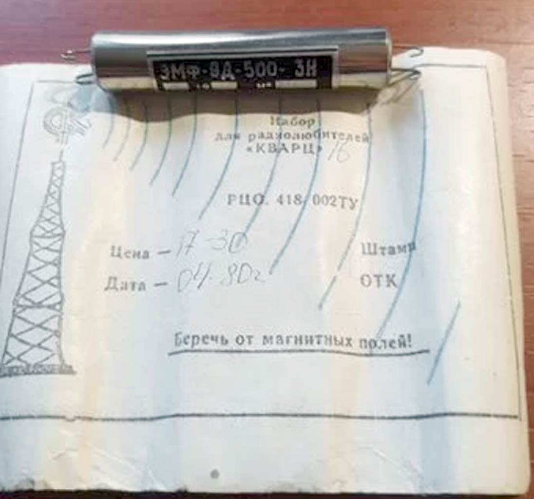 Набор для радиолюбителей "Кварц-16" возможно с 1980 года выпускал з/д "Кратон", Коммунарск, УССР. Содержит электромеханический фильтр типа ЭМФ-9Д-500-3Н. Цена набора 17 руб. 30 коп.