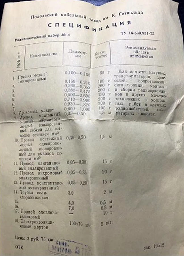 набор № 4 выпускался возможно с 1980 года Подольским кабельным заводом