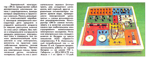 Электронный конструктор "ЭК-2" планировался к выпуску с 1982 года. Информация о ЭК в журнале "Новые товары №9 за 1982 г.