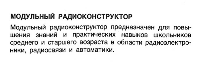 Модульный радиоконструктор разработан предположительно в 1984 году. Предназначен для конструирования радиоэлектронных устройств и отработки схем без применения паяльника.