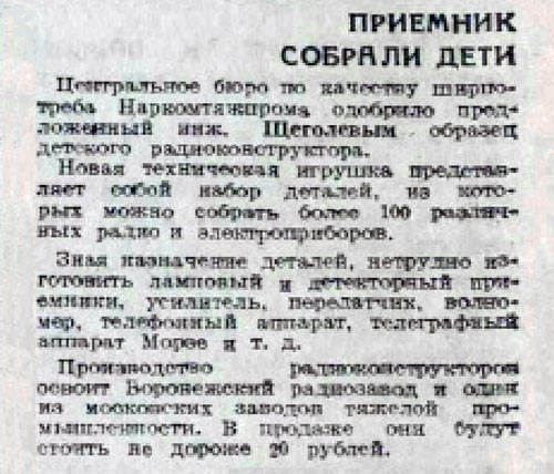выпускался с 1935 года Воронежским радиозаводом и одним из Московских заводов