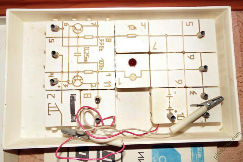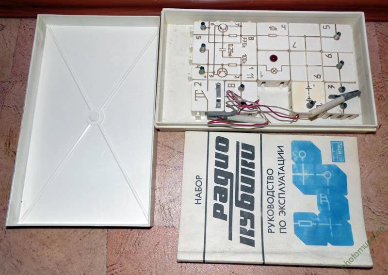 Набор "Радиокубики-М" выпускался предположительно с 1986 года. С помощью набора можно собрать несколько действующих электронных устройств, соединяя кубики между собой по приведённым в инструкции по эксплуатации схемам и рисункам.