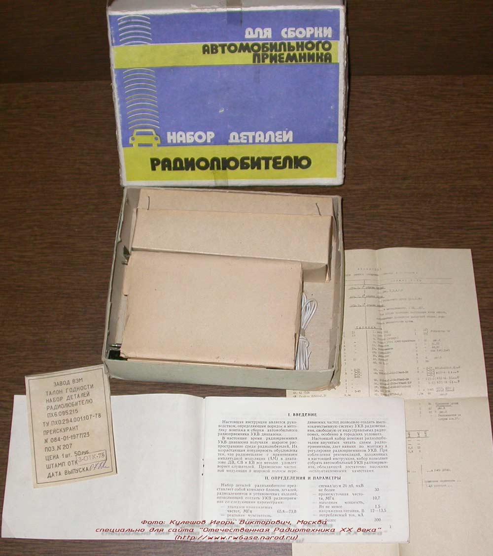 с 1981 года выпускал Пензенский завод "ВЭМ". Набор радиодеталей, узлов