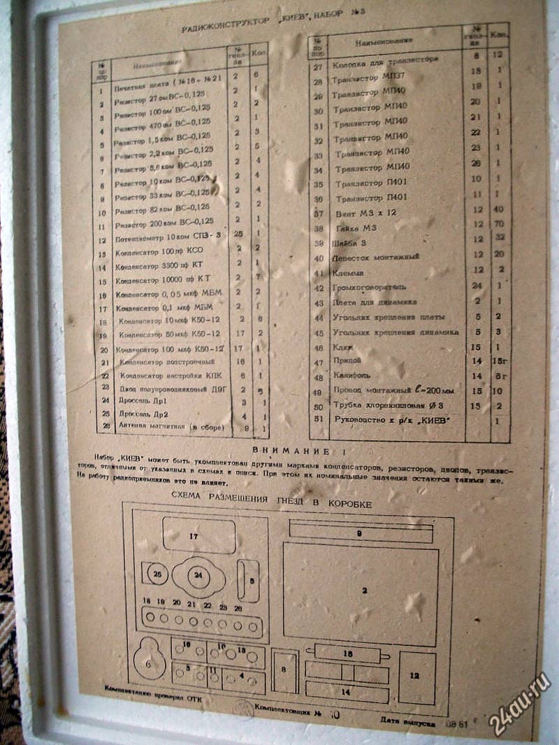 "Киев" (Набор №3) выпускался с 1981 года. Набор предназначен для сборки