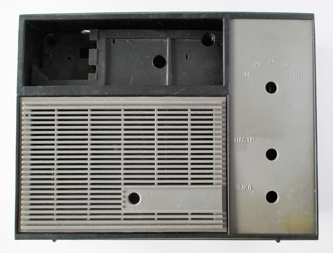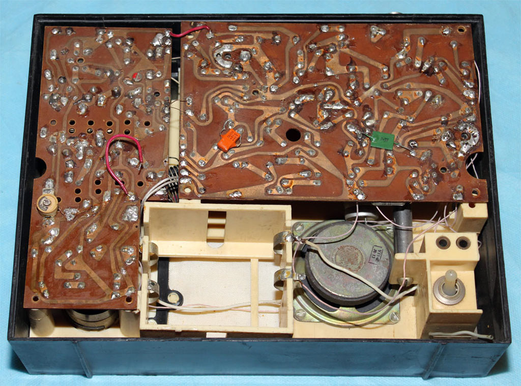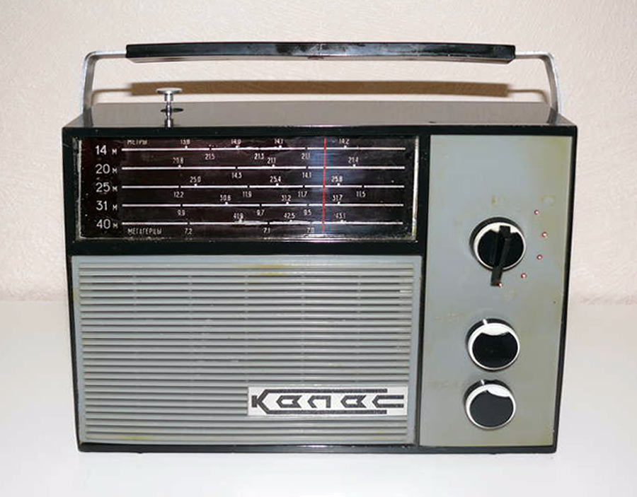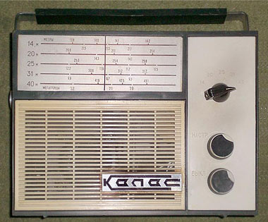 без приборов. Питается радиоприёмник от 2-х батарей 3336Л. Диапазоны: 21,0...21,45