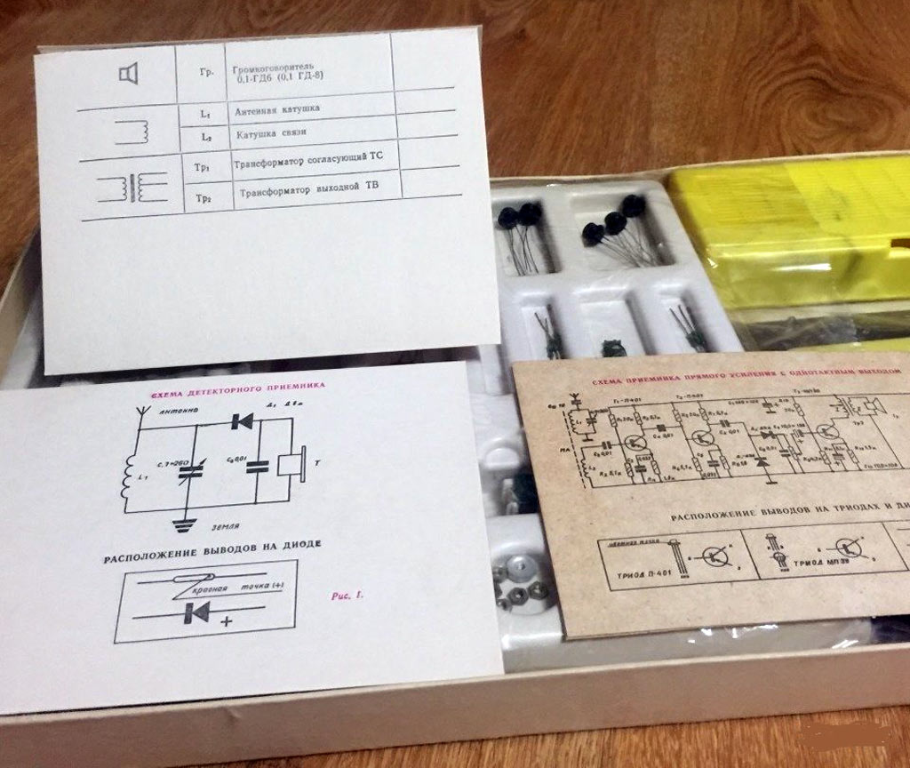 конструкции, в зависимости от комплектации: детекторный радиоприёмник;
