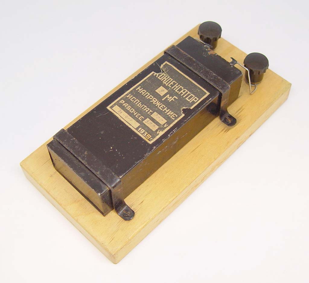 Конденсатор ёмкостью 2 мкФ и наряжением 300 В выпускался с 1938 года как элемент электрической схемы при демонстрации опытов по электричеству.