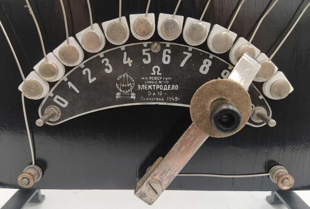 Реостат рычажный (демонстрационный). Ленинградский завод № 10 "Электродело". 1949 год. Для ступенчатой регулировки сопротивления от 1 до 10 Ом.