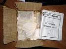 по коробке с красной или оранжевой наклейкой, на которой изображён стереокомплекс