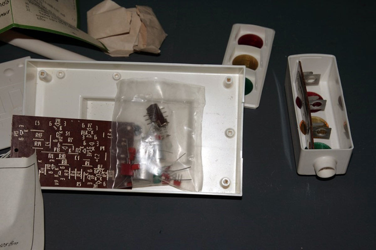 Игрушка электронная "Светофор" (модель сборная) выпускалась возможно с 1980 года Рязанским приборным заводом. Игрушка предназначена для детей в возрасте от 12 лет.