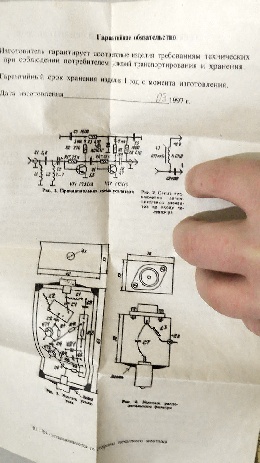 "Телевизионный антенный усилитель" выпускался предположительно с 1997 года