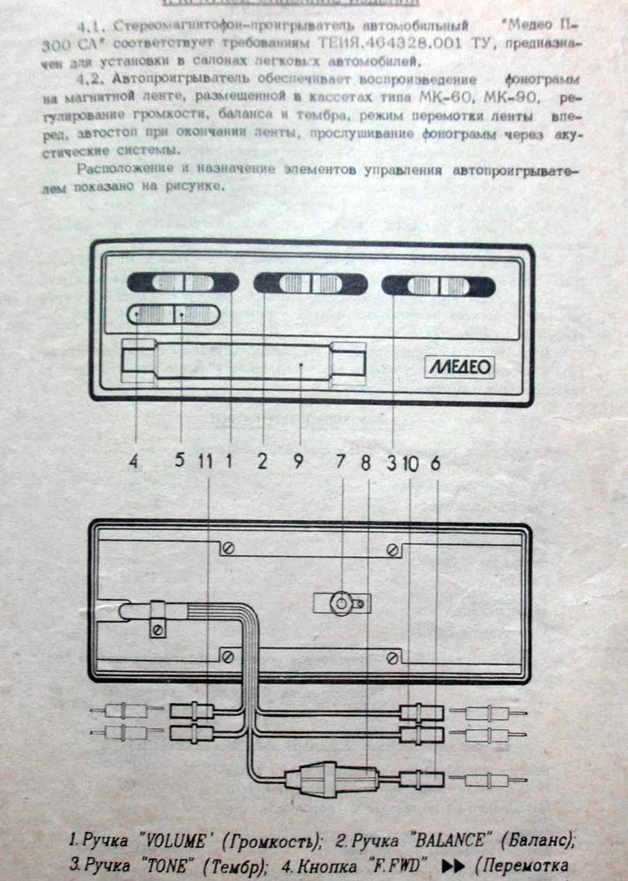 Автомобильный стереомагнитофон-проигрыватель "Медео П-300СА" выпускался предположительно с 1990 года Петропавловским заводом имени С. М. Кирова. Информации почти нет.