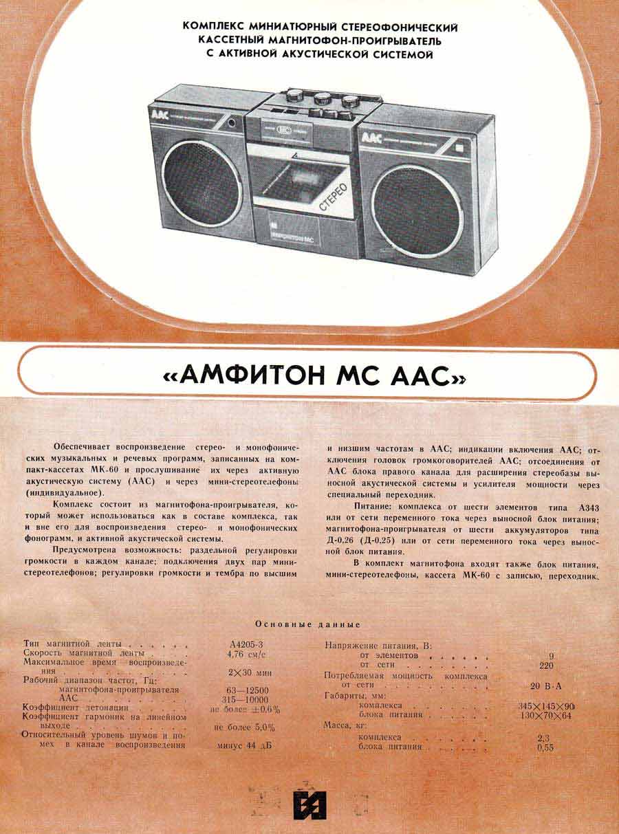 масса 2,2 кг. Цена ААС "Амфитон", МП "Амфитон МС" и БП - 176 рублей.