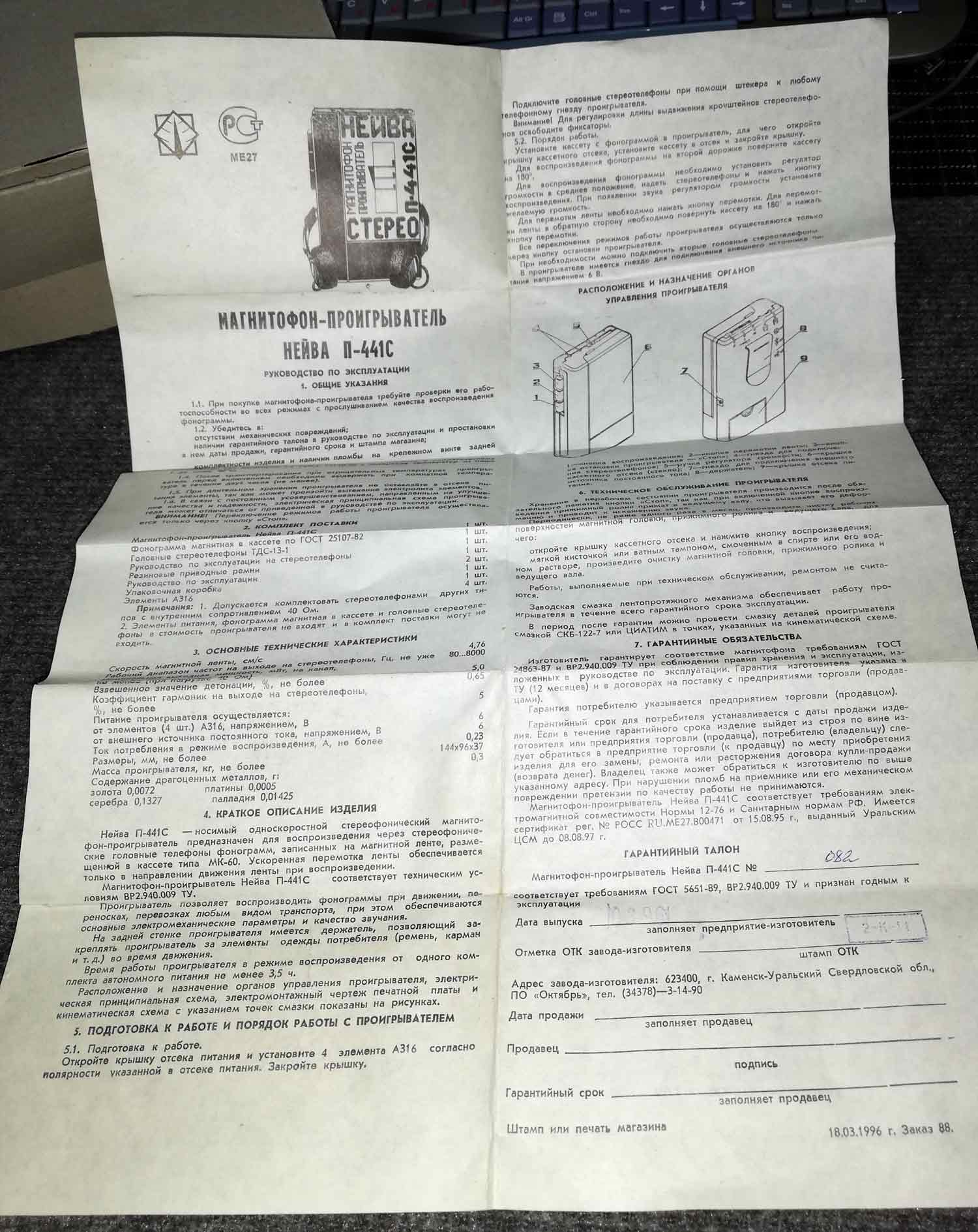завод. Стереофонический проигрыватель "Нейва П-441" предназначен для воспроизведения