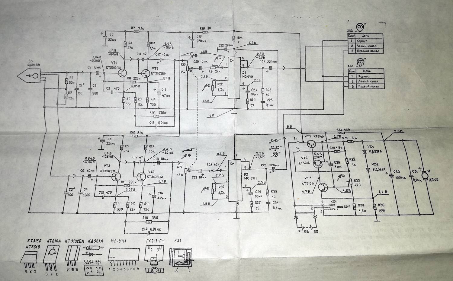 фонограмм с кассет МК на 2 пары головных телефонов. Питание осуществляется