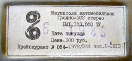 заводе автомагнитол. ''Гродно-302-стерео'' автомагнитола третьей группы