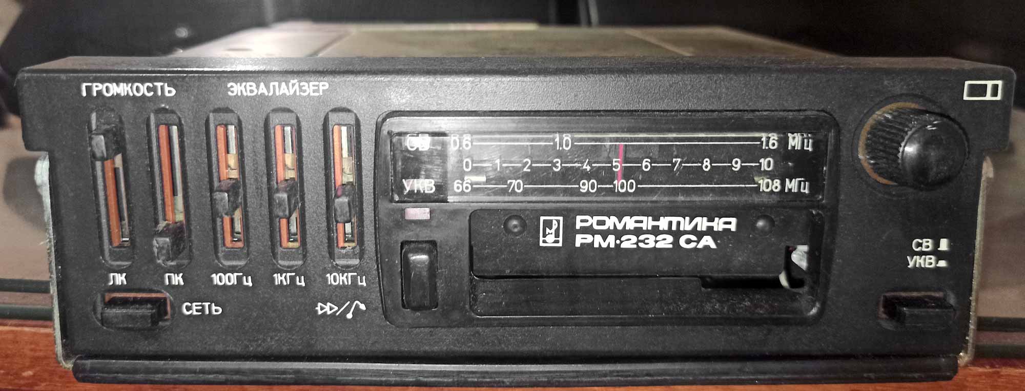Магнитола стереофоническая транспортная "Романтика РМ-232СА" с комплектом АС "Романтика-12ГР-32А" производилась возможно с 1996 года Харьковским приборостроительным заводом имени Т.Г.Шевченко.