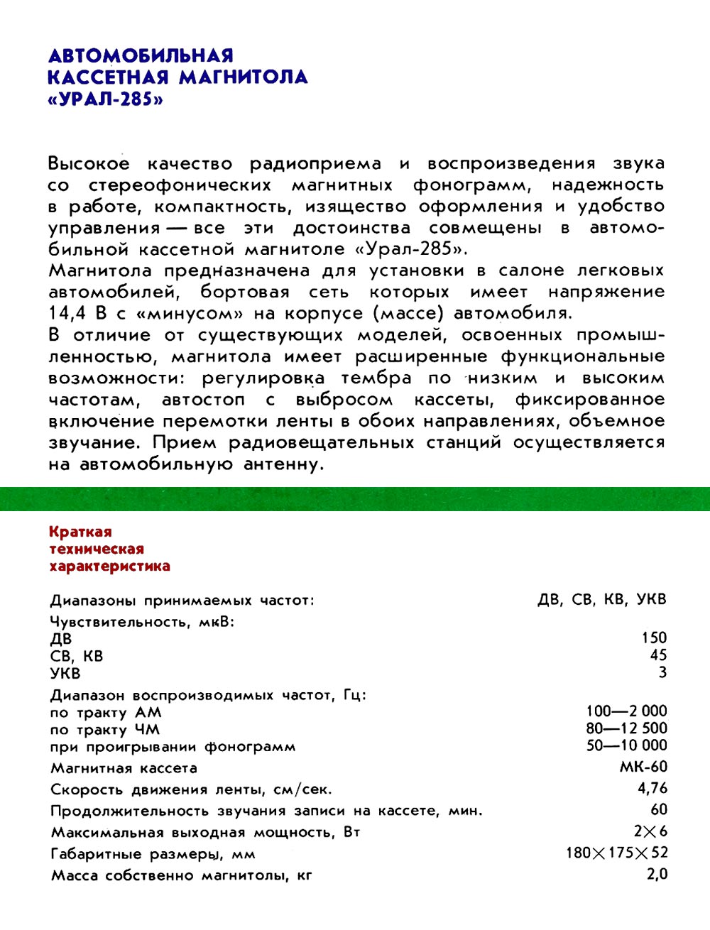 магнитола "Урал-285-стерео" выпускалась с 1986 года Сарапульским завод