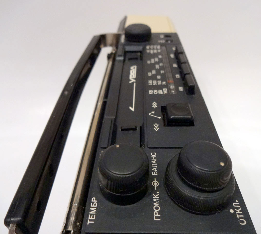 работает в диапазонах ДВ, СВ, КВ и УКВ. Проигрыватель кассет рассчитан
