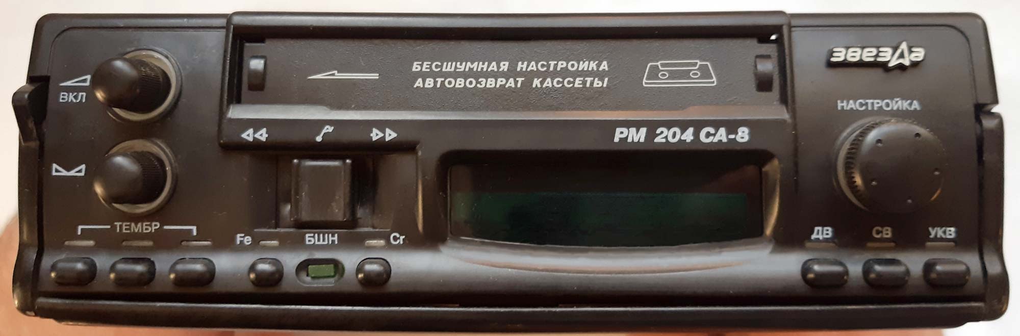 Автомобильная магнитола "Звезда РМ-204СА-8" выпускалась предположительно с 2005 года Загорским ПО "Звезда". Информации по магнитоле пока нет. Фото Александра и Павла Хлебосолова.