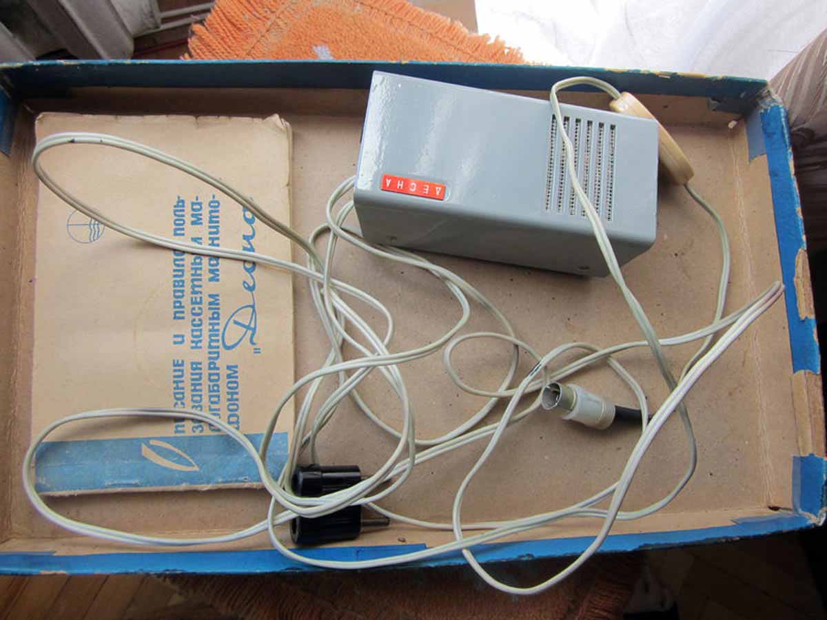блоком питания, микрофоном с ДУ, шнурами, кожаным футляром, кассетой с