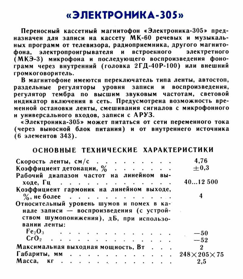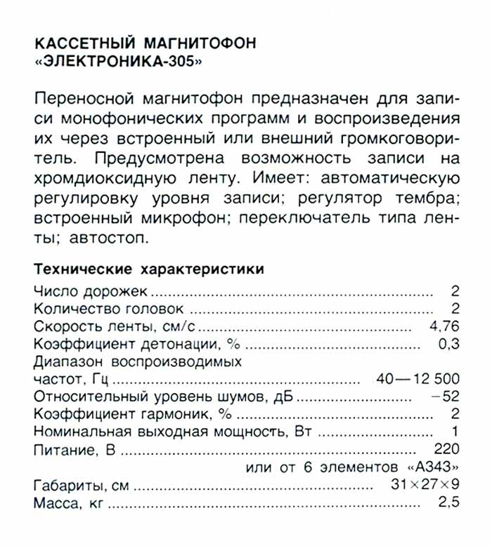 выносной блок питания или от 6 элементов 343. Скорость протяжки ленты 4,76