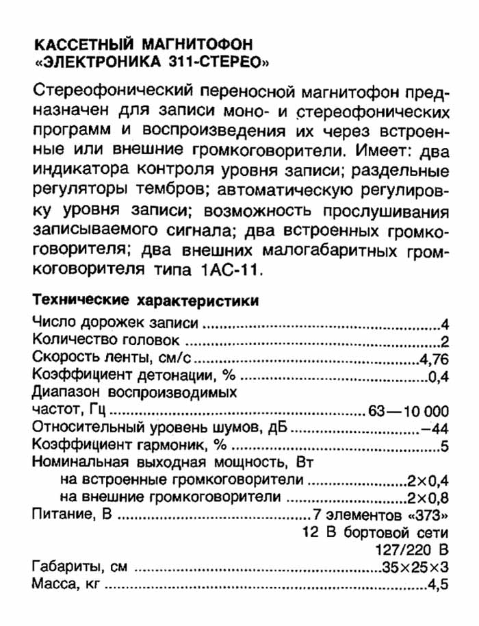конструкции, схеме и параметрам магнитофоны одинаковы. Магнитофон предназначен