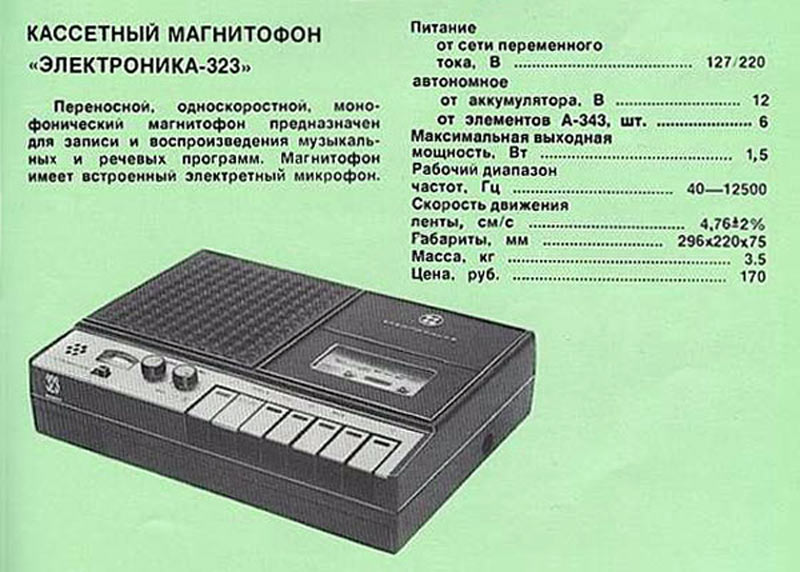 кассетные магнитофоны "Электроника-323", "Электроника-323-1"и "Электроника-324",