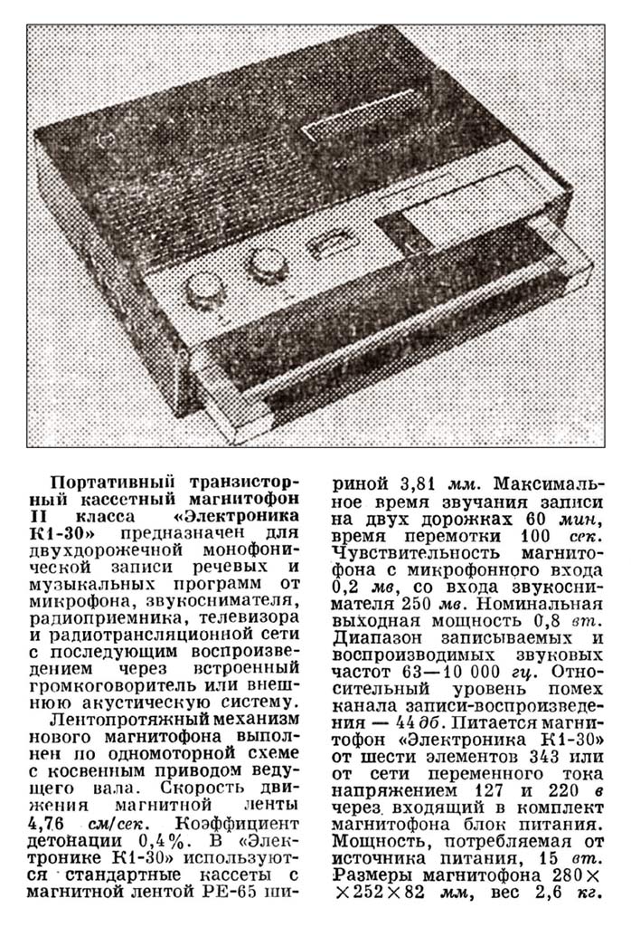 кассетный магнитофон "Электроника К-1-30" с осени 1971 года выпускал Зеленоградский