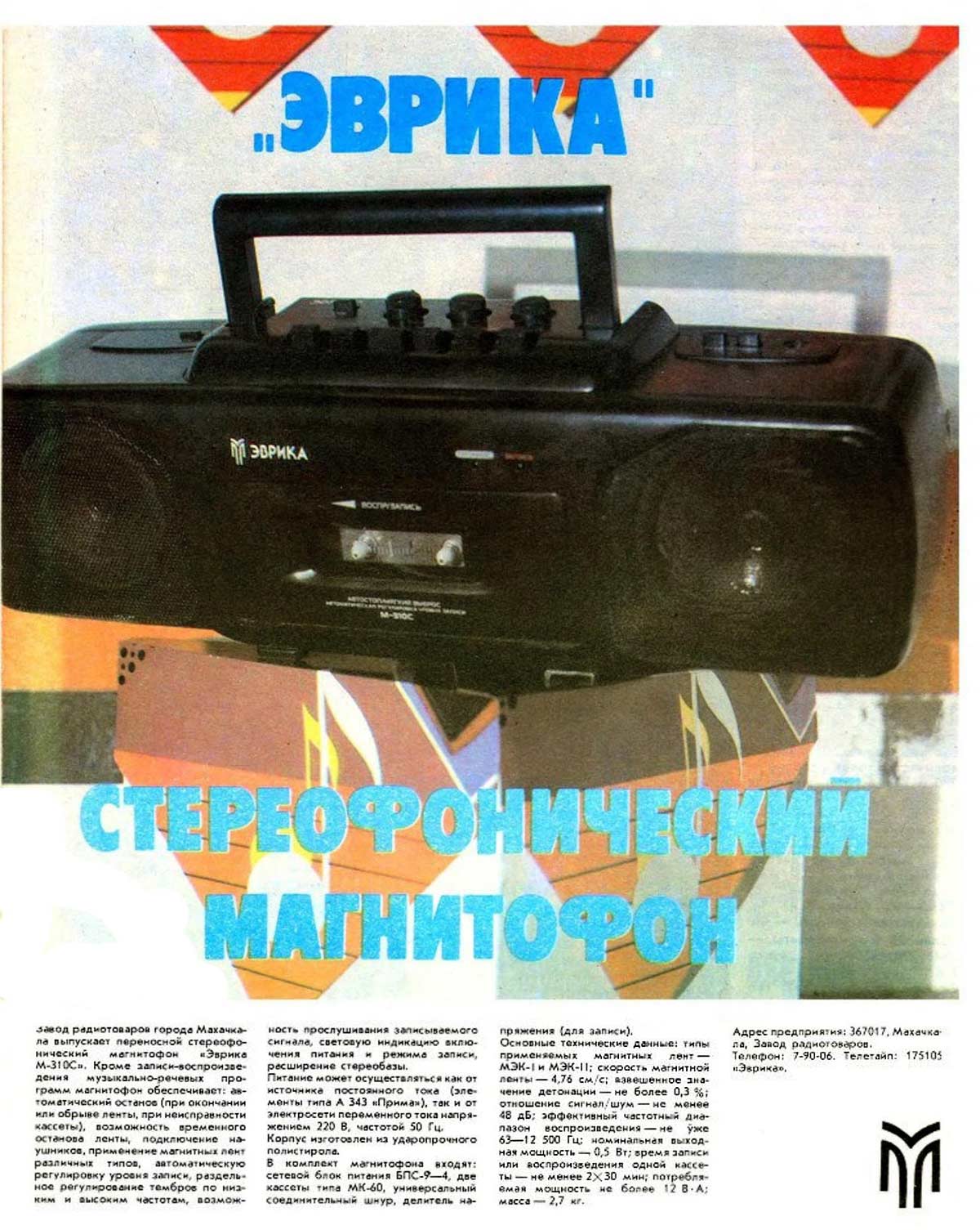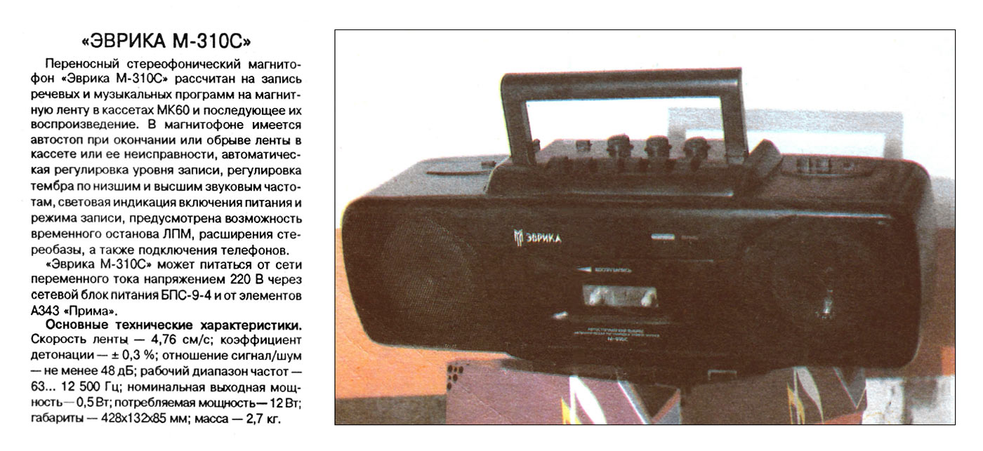 магнитофона и магнитолы "Эврика М-310С" предоставил
