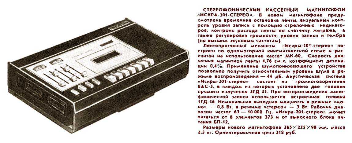 кассетный магнитофон "Искра-201-стерео" с 1975 года подготовил к производству