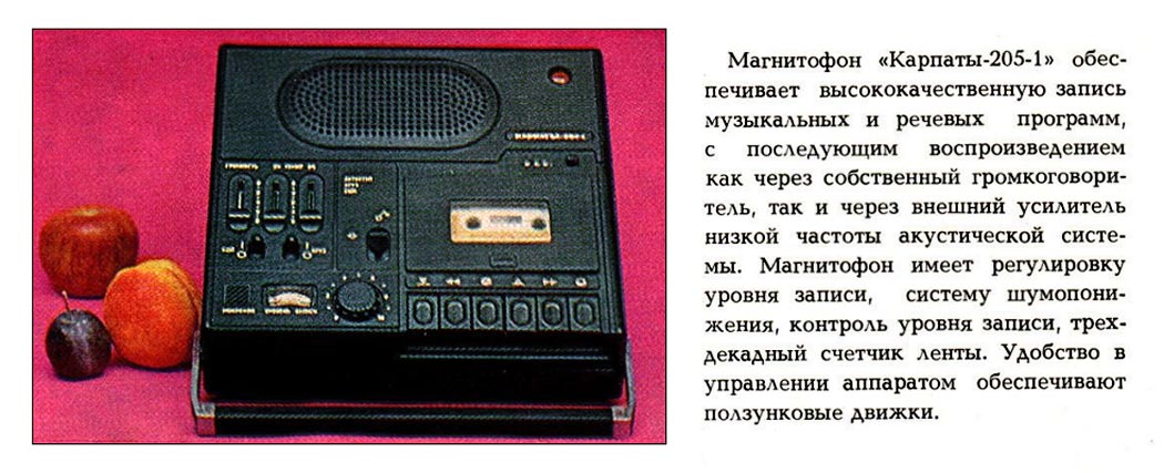 модели. Магнитофон "Карпаты-205-3" выпускаемый небольшой