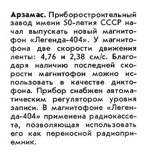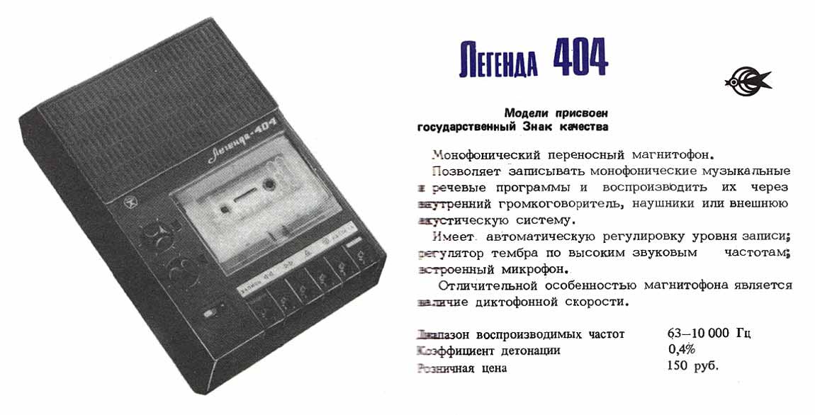 ДВ. С 1989 года магнитофон выпускался под наименованием ''Легенда М-404''.