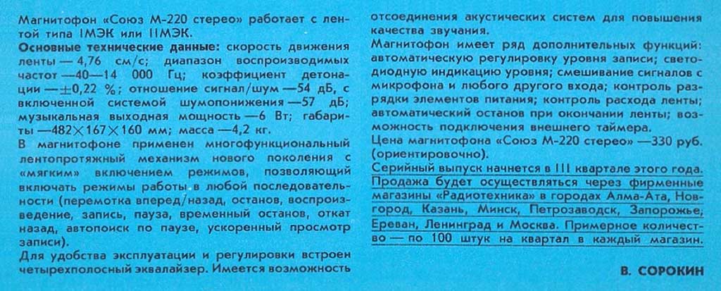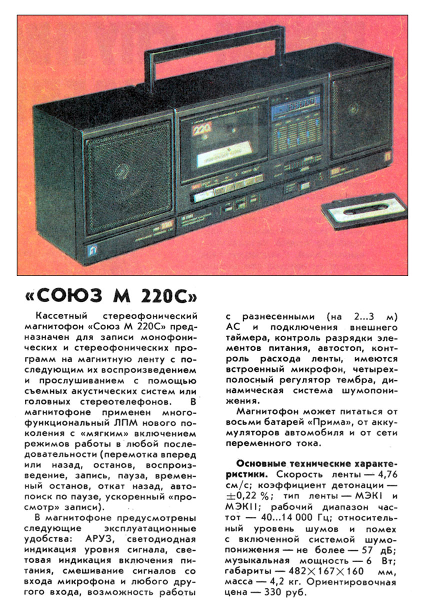 "Союз М-220С" с 1990 года выпускал Брянский ЭМЗ. Он создан на базе магнитофона