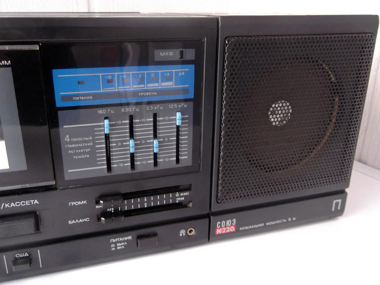 магнитной ленты, встроенный электретный микрофон, четырёхполосный регулятор