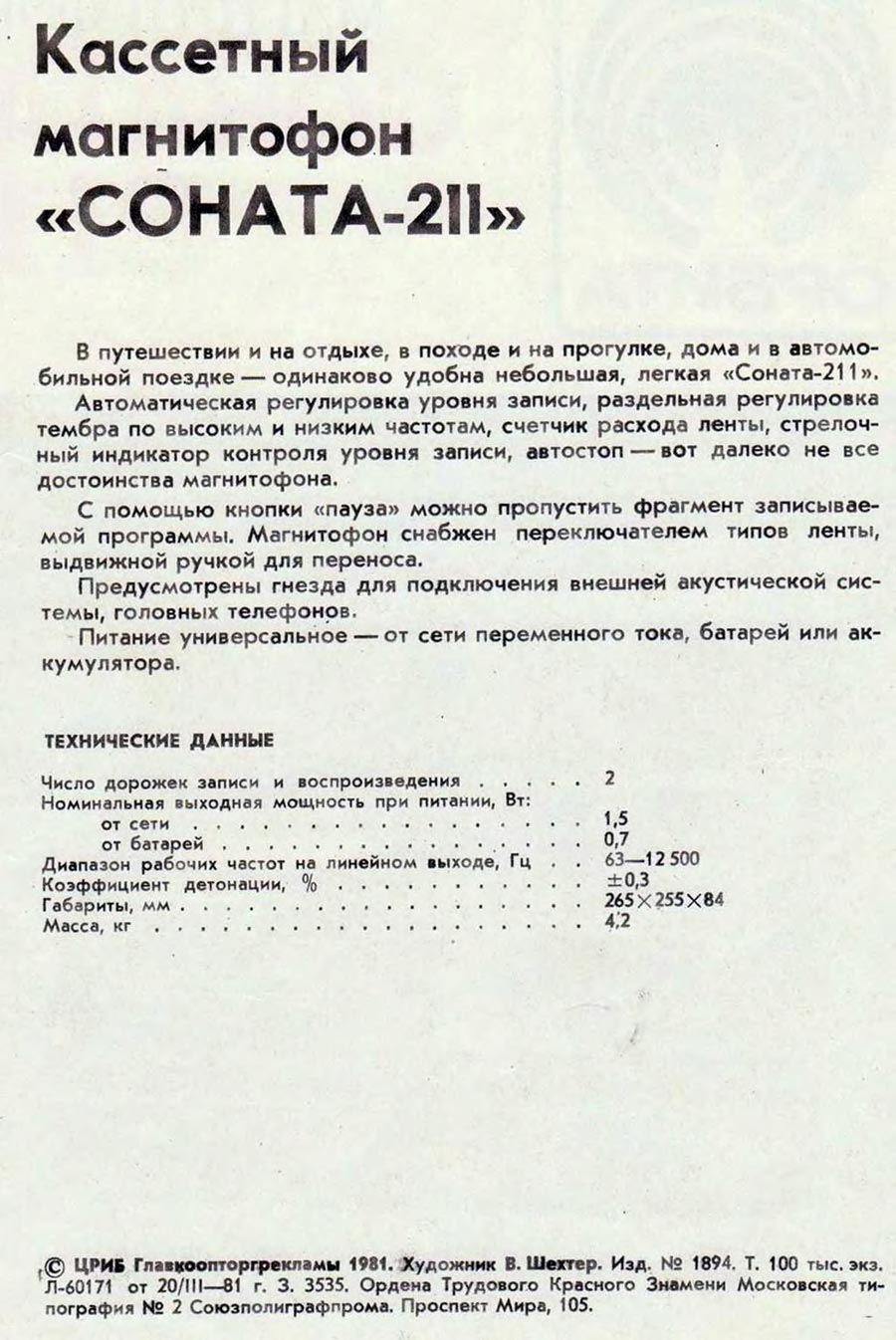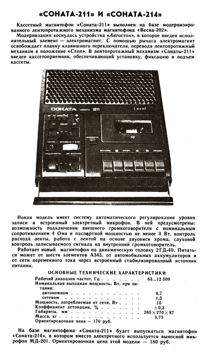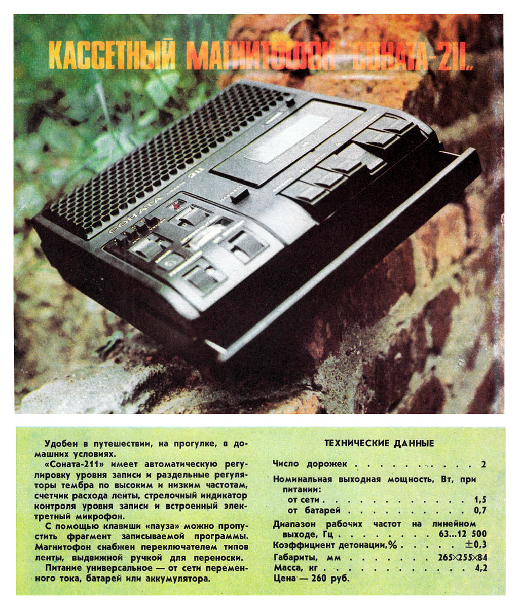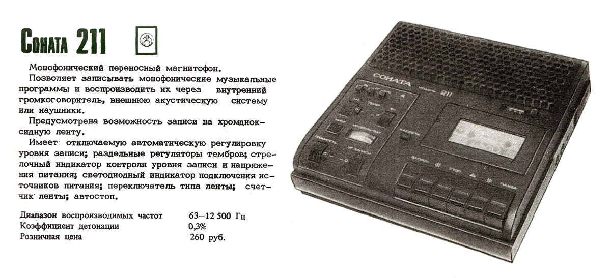 ''Соната-211'' предназначен для записи и воспроизведения фонограмм на кассетах