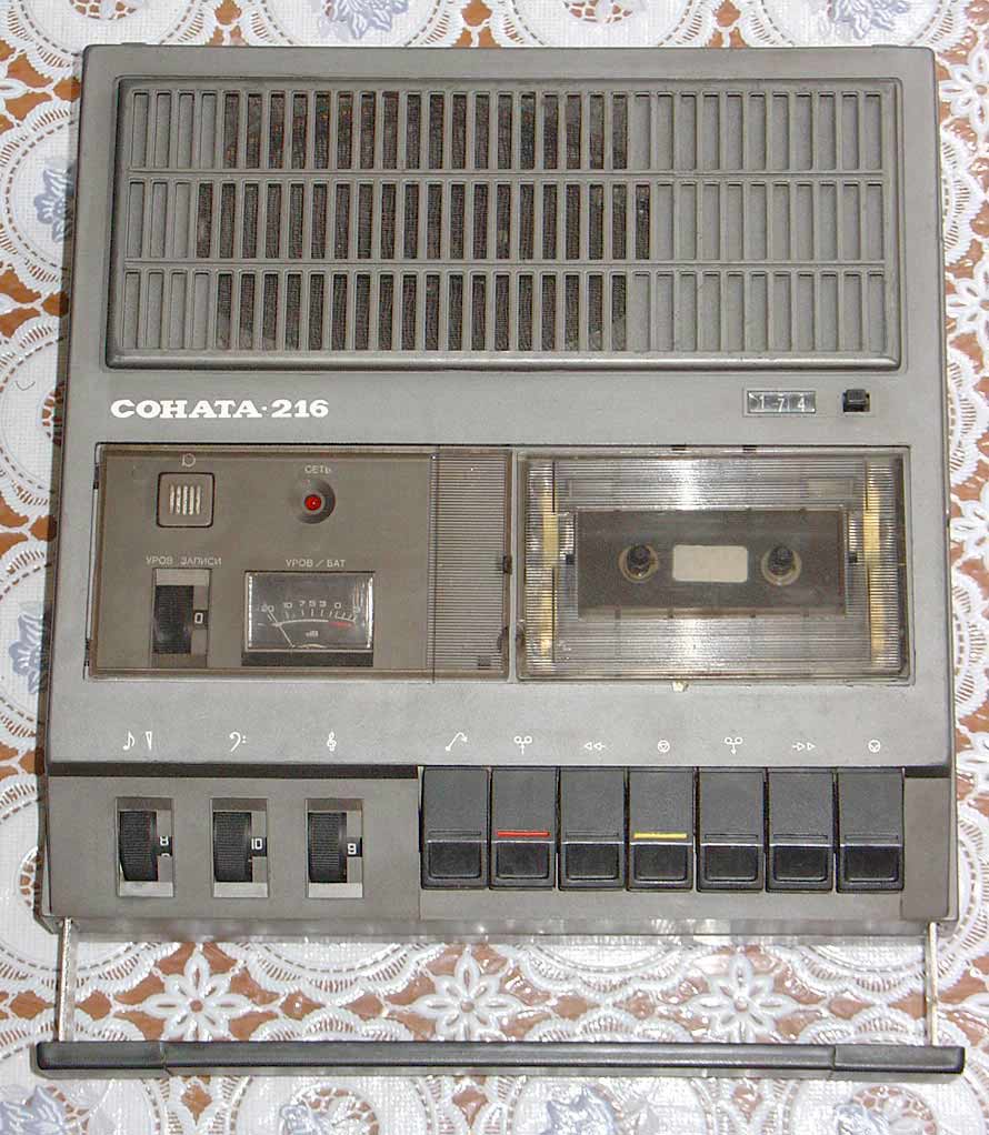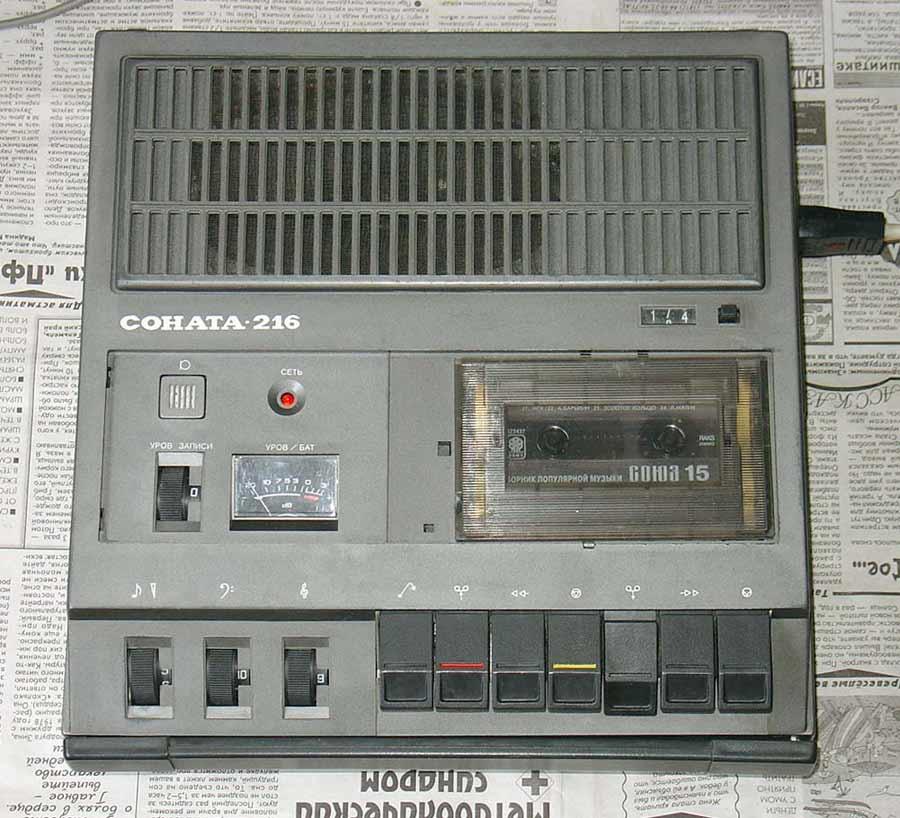 и на панели надписью "Магнитофон кассетный "Соната-216". Название