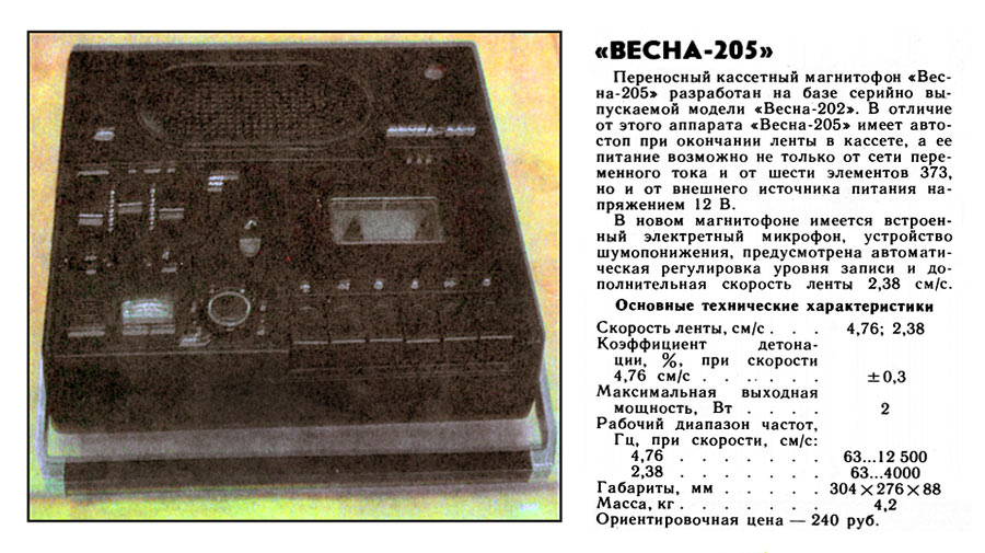 кассетный магнитофон "Весна-205" с I-кв 1980 года выпускал Запорожский