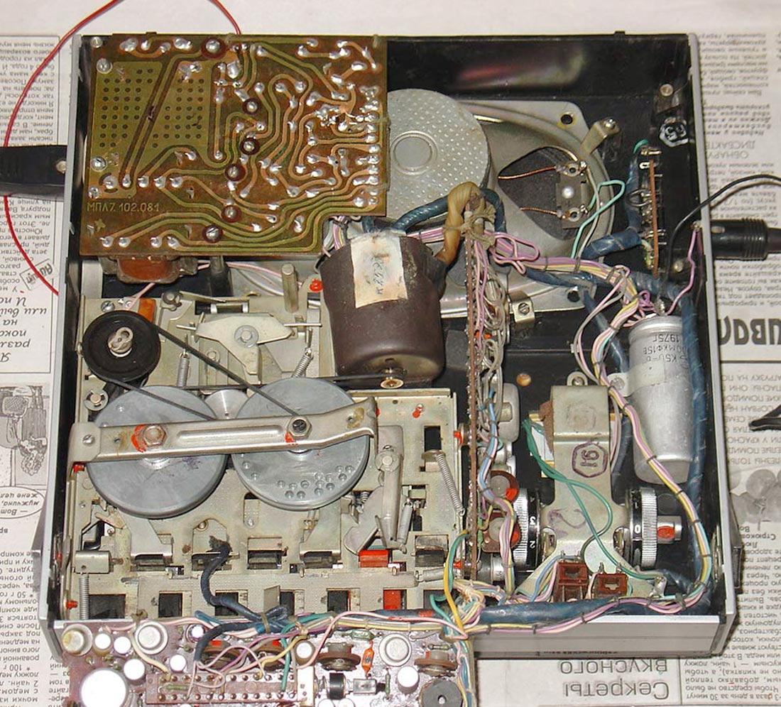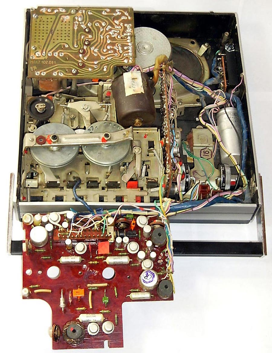 От всех других кассетных ЛПМ его отличает наличие двух маховиков, связанных