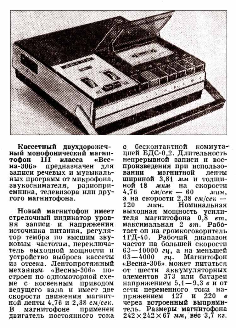 год. Описание магнитофона "Весна-306"