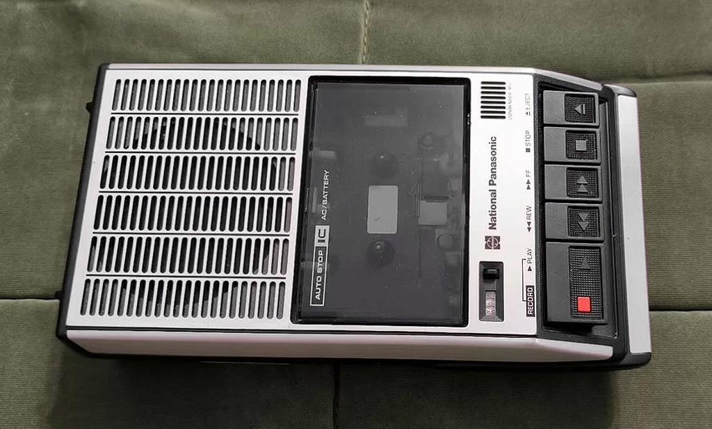 кассетный магнитофон 1975 года, выпущенный в Японии. Параметры: работает