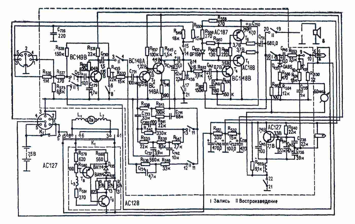 протяжки ленты 4,76 см/сек. Диапазон рабочих частот на линейном выходе