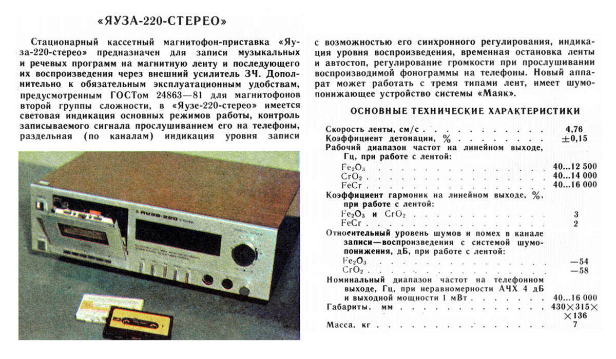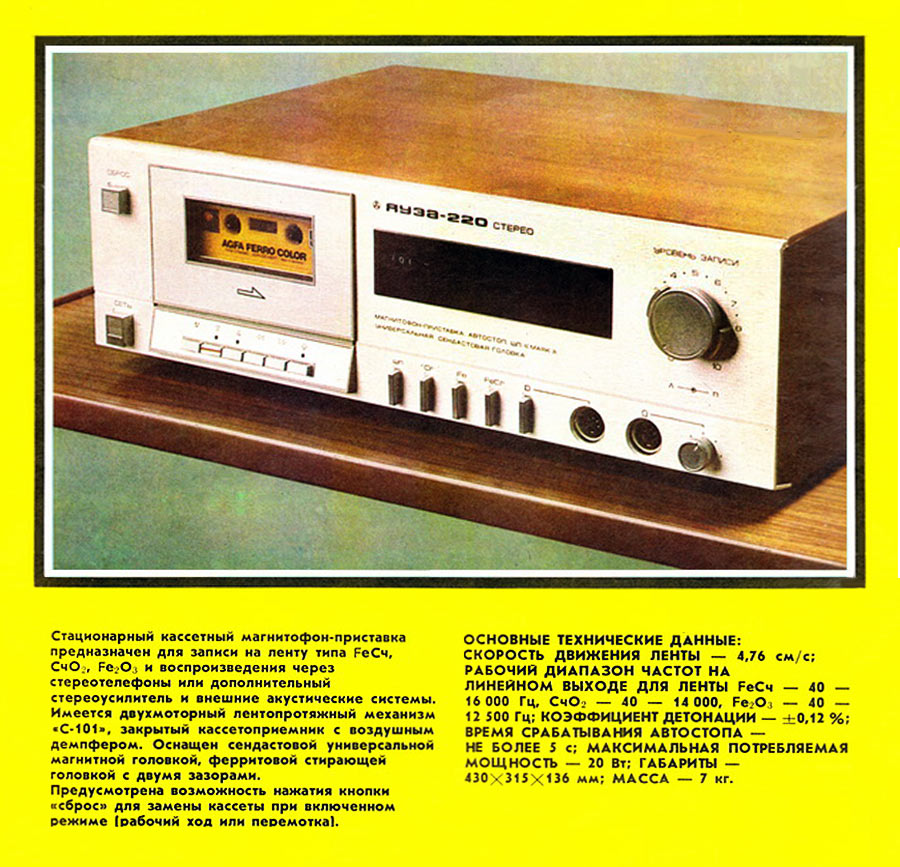 магнитофон-приставка "Яуза-220-стерео" с начала 1984 года выпускал Московский