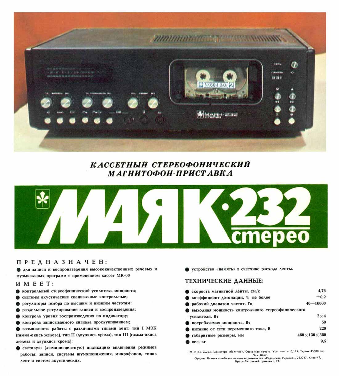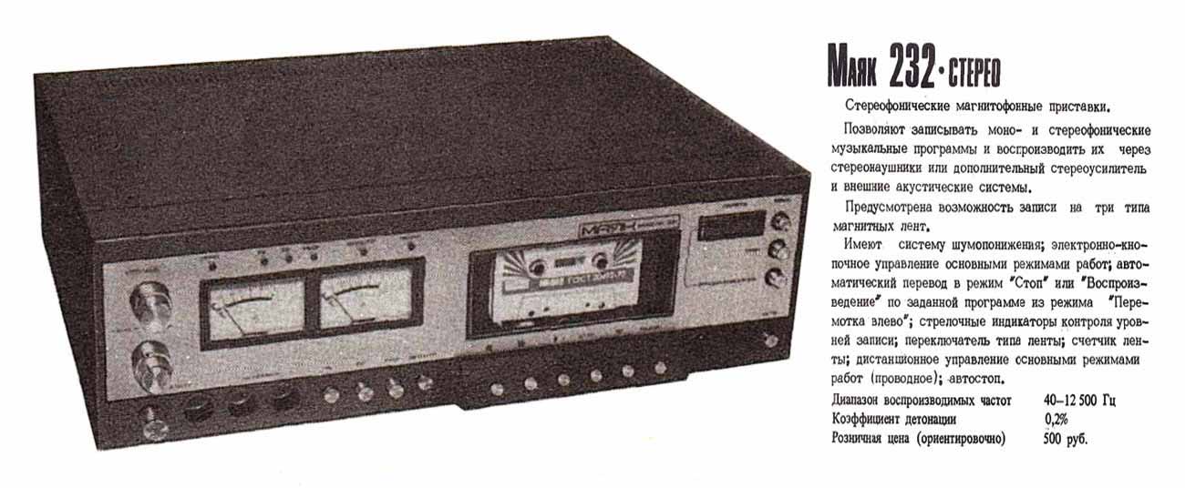 "Маяк-232-стерео" с 1985 года выпускался Киевским заводом "Маяк". Предназначен