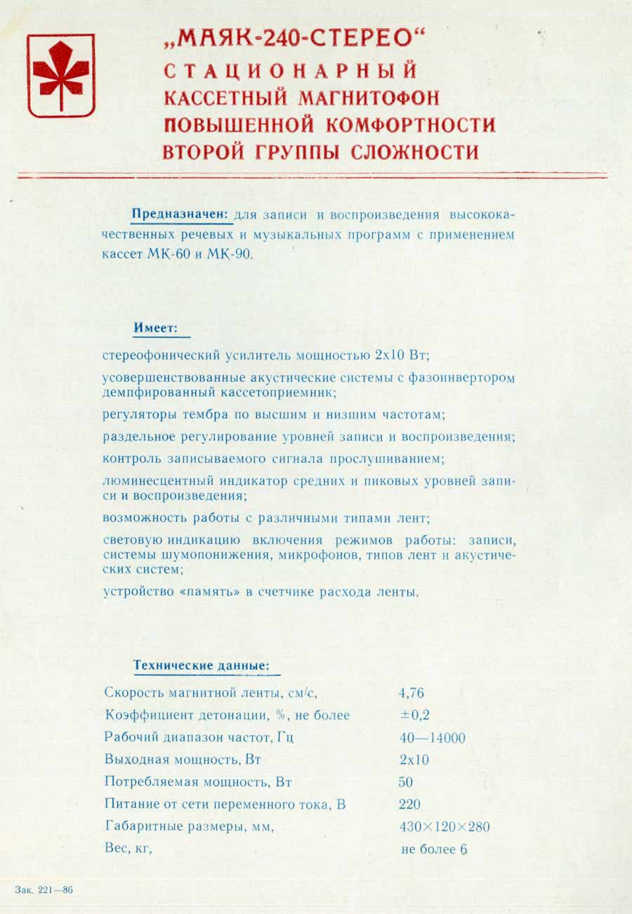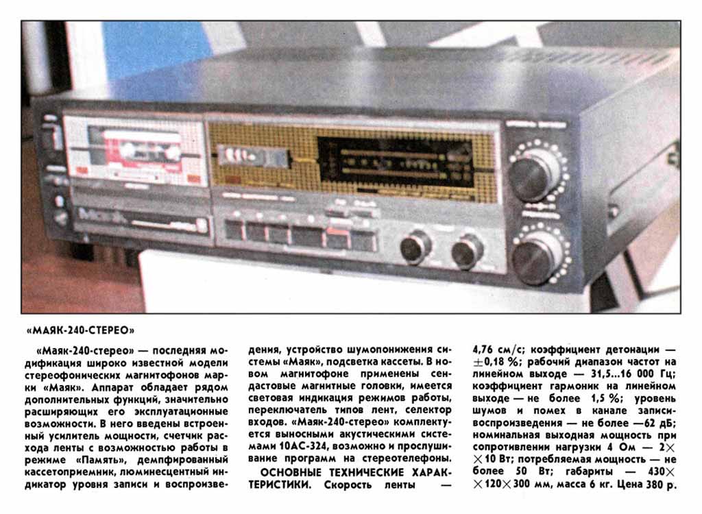 Магнитофон "Маяк-240С" с 1986 года