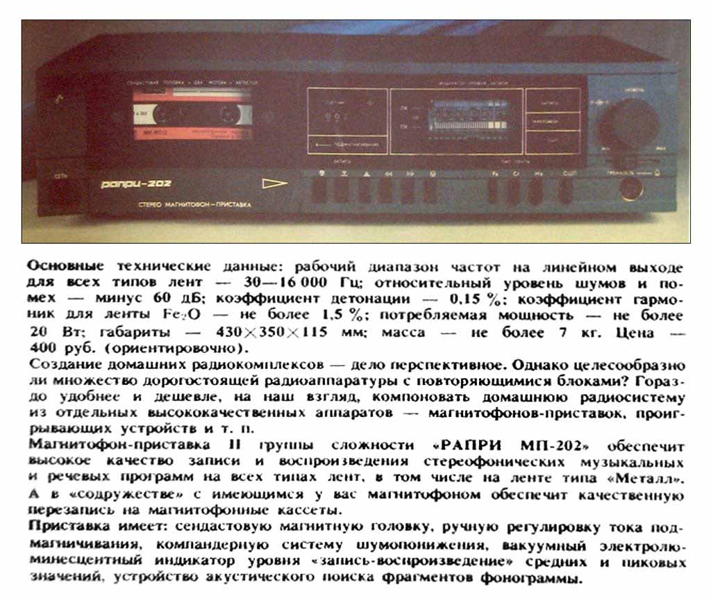 масса 7 кг. Цена 400 рублей. С осени 1987 года МП именовалась как "Рапри