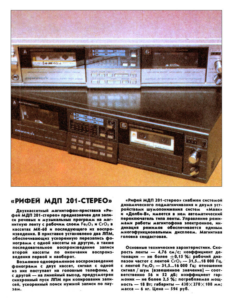 "Рифей МПД-201-стерео" выпускалась с 1990 года Миасским приборным заводом