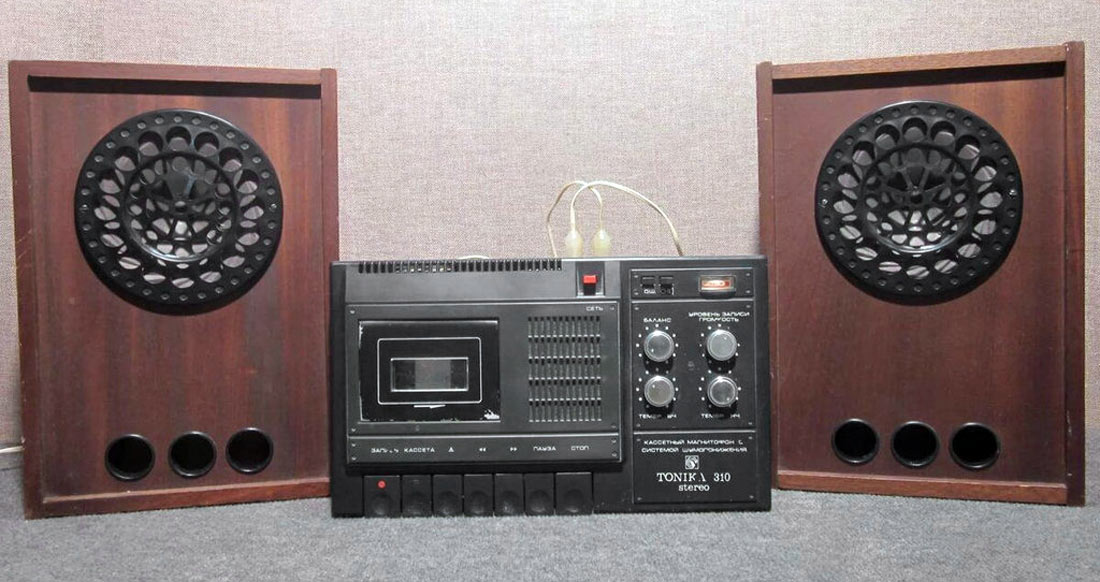 АС, в каждой из которых стоит по громкоговорителю типа 3ГД-38Е. В магнитофоне