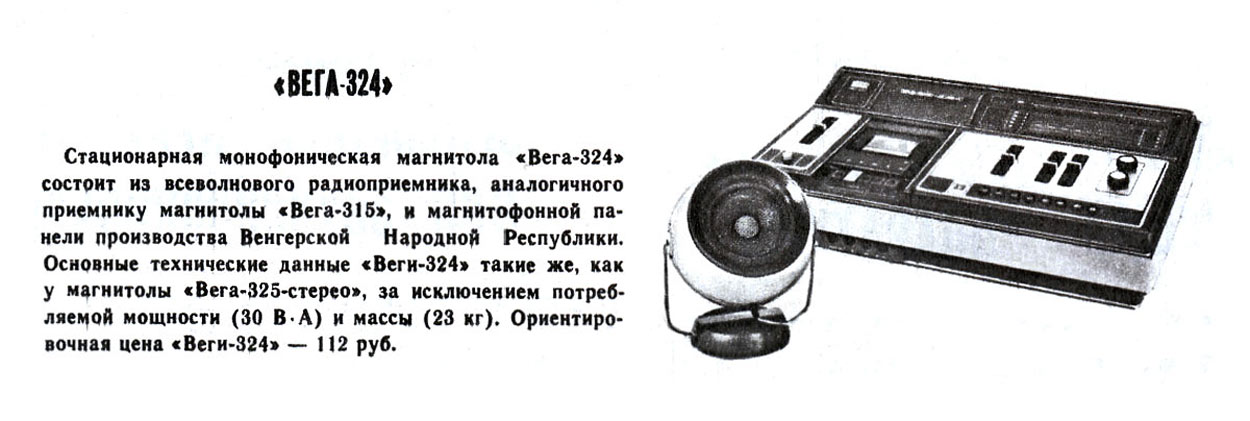 в 112 рублей. Магнитолы "Вега-324-стерео" и "Вега-325-стерео" в производство
