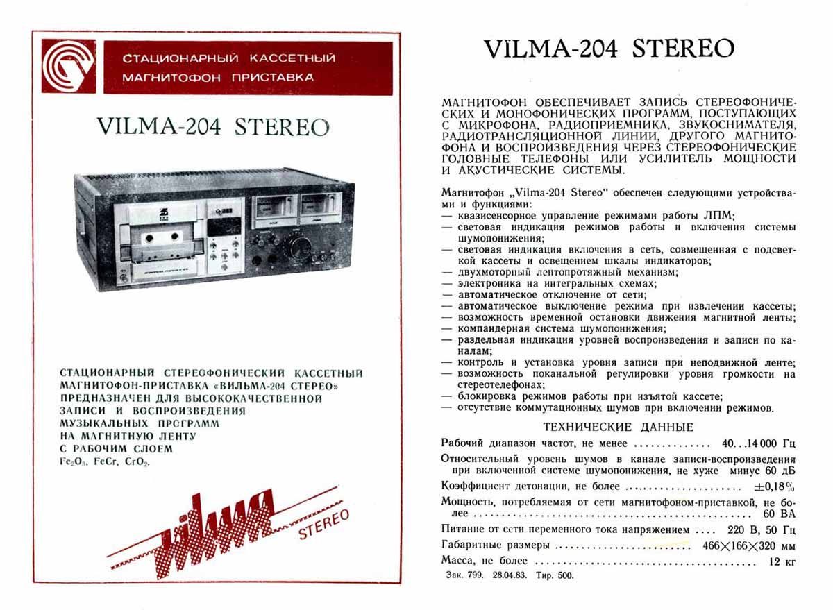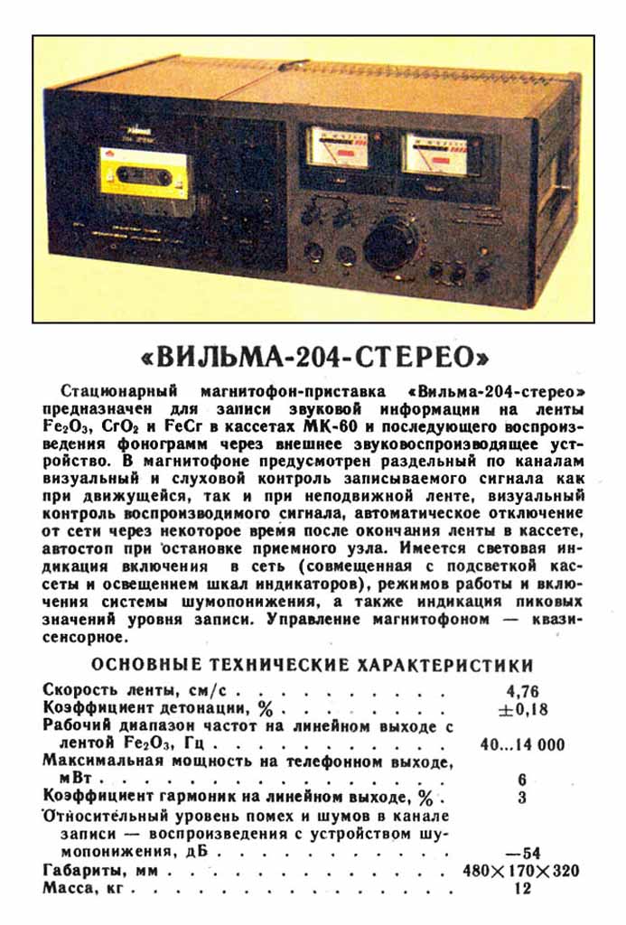 Магнитофон-приставка "Вильма-204-стерео"